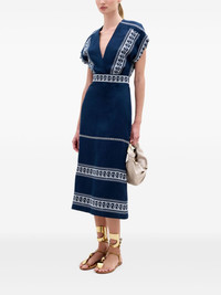 Ady midi dress Highlights - Navy blue - Embroidered detailing - Short sleeves - Deep v-neckline - Mid-length design Imported Composition Organic Linen 85%, Polyester 15% Washing instructions Dry Clean Only