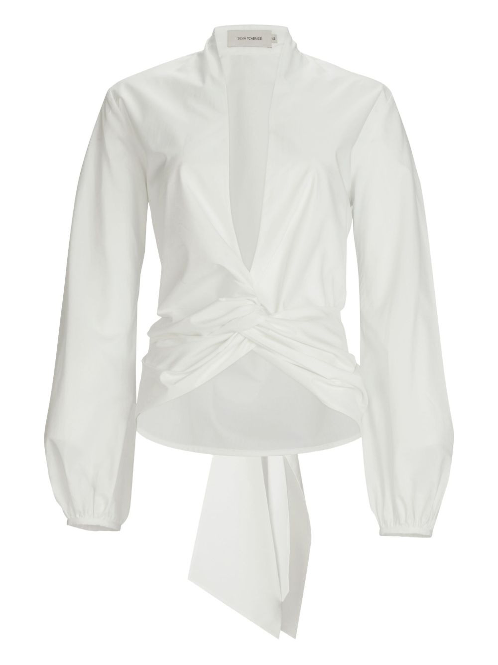 Dania blouse Highlights - White - Balloon sleeves - Deep v-neck - Knotted front detail - Rear tie fastening Imported Composition Viscose 51%, Acetate 49%