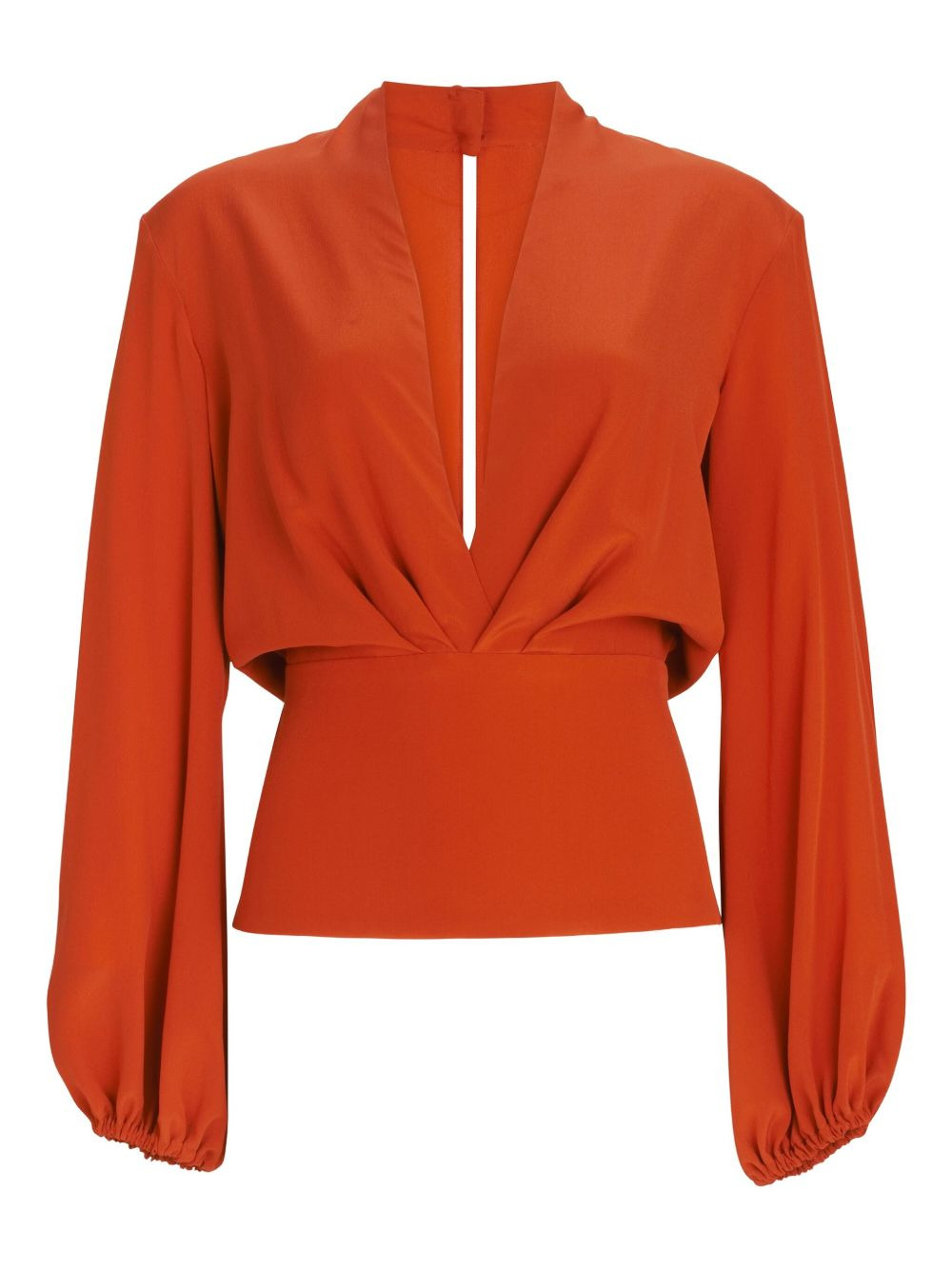 Delfina V-neck blouse Highlights - Burnt orange - V-neck - Bishop sleeves - Long sleeve Imported Composition Viscose 97%, Elastane 3% Washing instructions Dry Clean Only