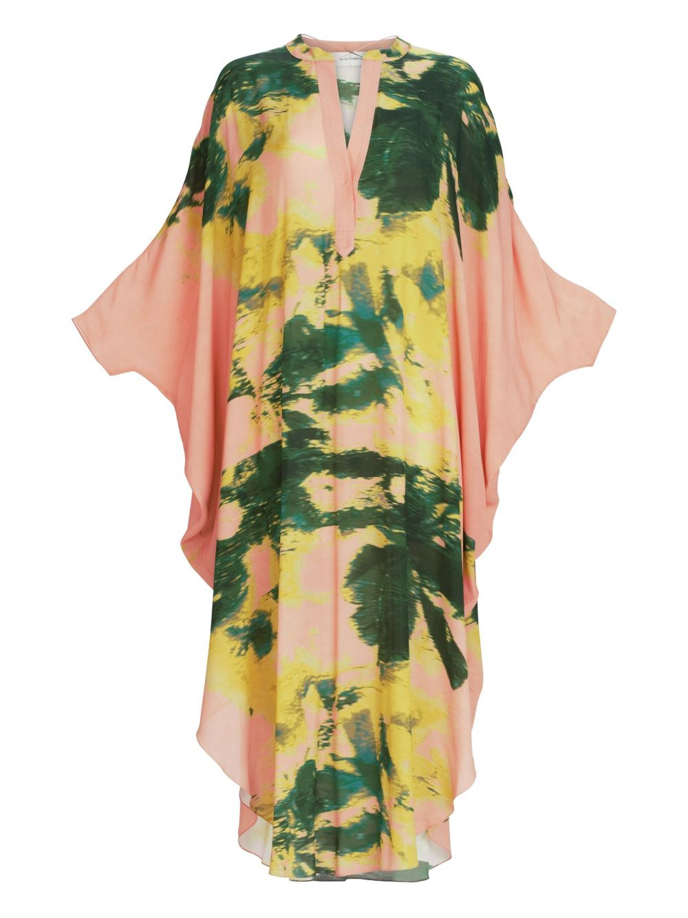 Elea dress Highlights - Pink and green - Tie-dye effect - V-neck - Oversized sleeves - Side slits - Relaxed drape Imported Composition Viscose 51%, Acetate 49%