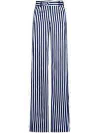 Emine trousers Highlights - Navy blue - Concealed fly and button fastening - Belt loops - Two rounded pockets to the sides - Vertical stripe pattern Imported Composition Silk 94%, Elastane 6%