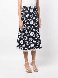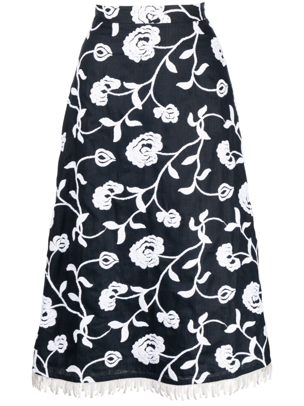 floral-embroidered A-line midi skirt Highlights - Navy blue/white - Linen blend - All-over floral embroidery - A-line - High waist - Concealed rear zip fastening - Fringed edge - Below-knee length Imported Composition Body: Linen/Flax 60%, Cotton 35%, Polyester 5% SIZE & FIT Model measurements Height 5 ft 10 in(1.77 m) Bust/Chest 31.49 in(80 cm) Hips 35.43 in(90 cm) Waist 25.19 in(64 cm) FittingInformation This midi-length skirt is intended to be worn high on the waist Made from a midweight non-stretch fabric This piece fits true to size – take your usual size