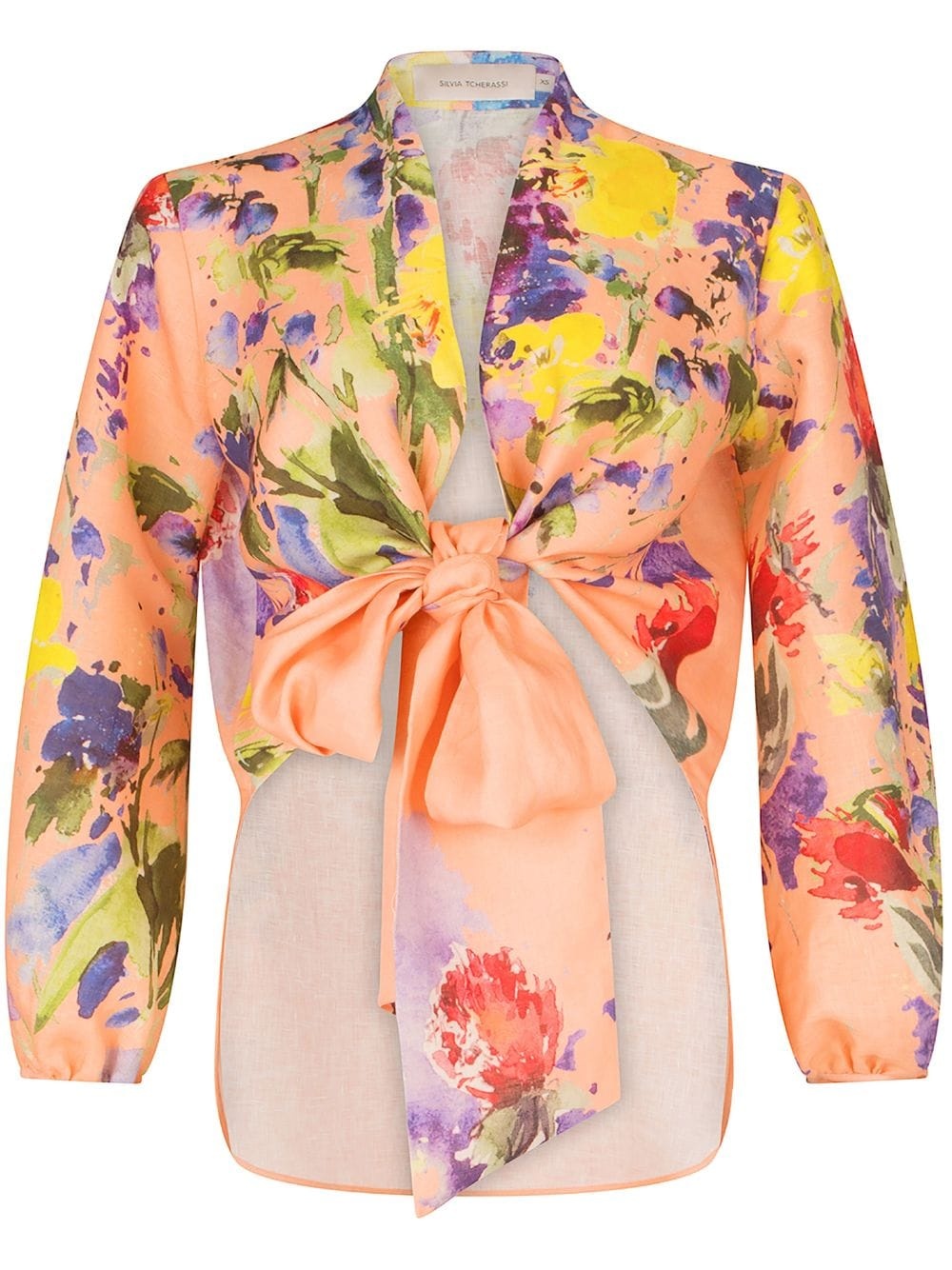 Floral linen blouse Highlights - Peach orange/multicolour - Linen - All-over floral print - V-neck - Self-tie fastening - Long puff sleeves - High-low hem Imported Composition Linen/Flax 100%