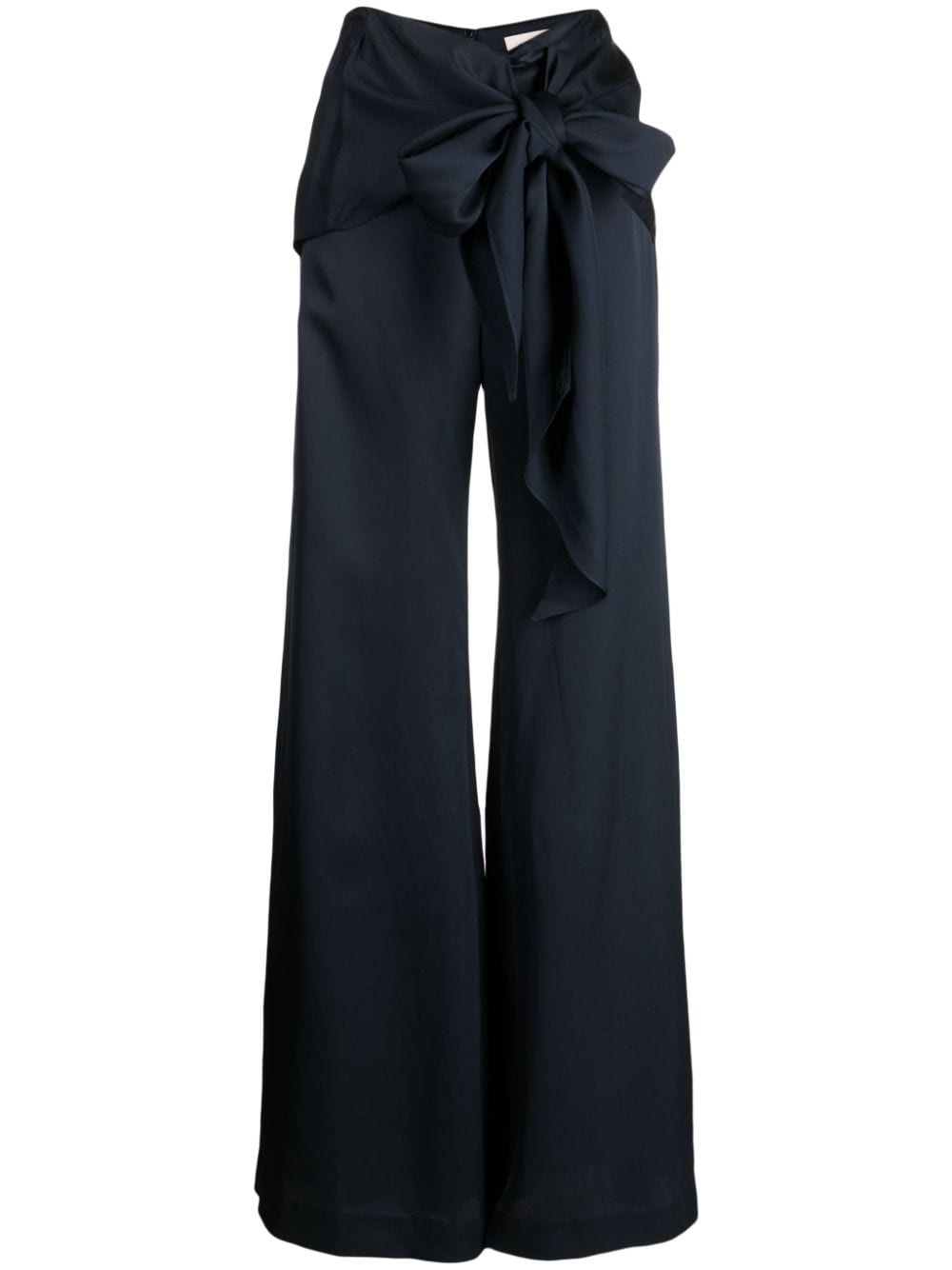 Noa satin high-waisted trousers Highlights - Navy blue - Satin finish - Bow detailing - Belted waist - High-waisted - Wide leg - Concealed rear zip fastening - Straight hem - Floor-length Imported Composition Lining: Polyester 100% Outer: Viscose 100%