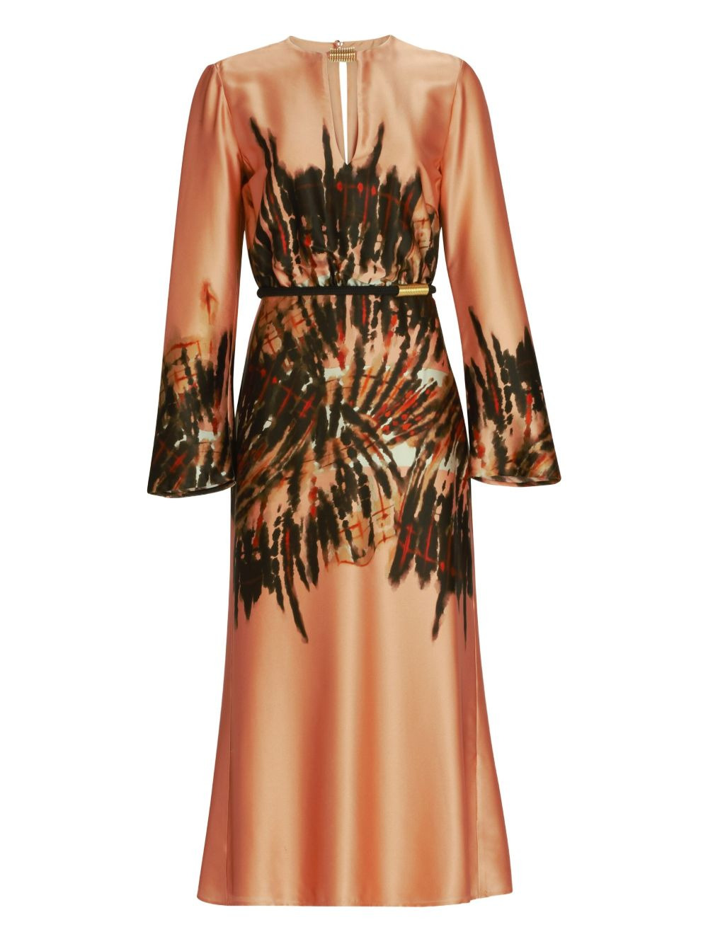 Pesaro abstract-print midi dress Highlights - Peach - Silk-blend - Abstract print - Long bell sleeves - Detachable belt - Keyhole neck Imported Composition Silk 94%, Elastane 6% Washing instructions Dry Clean Only