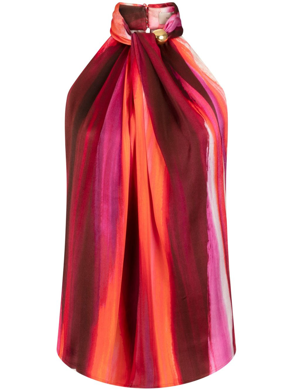 Shella blouse Highlights - Magenta/multicolour - Rear hook and eye fastening - Halterneck - Gathered detailing - Bead detailing - Sleeveless - Abstract pattern print - Curved hem Imported Composition Outer: Viscose 100% Lining: Polyester 100% Washing instructions Dry Clean Only