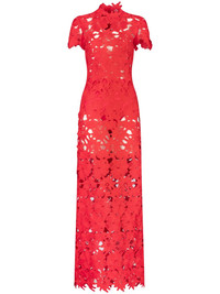 Taiana dress Highlights - Red - Organic cotton blend - Cut-out floral detailing - High neck - Short sleeves - Floor-length Imported Composition Organic Cotton 80%, Polyester 20% Washing instructions Dry Clean Only