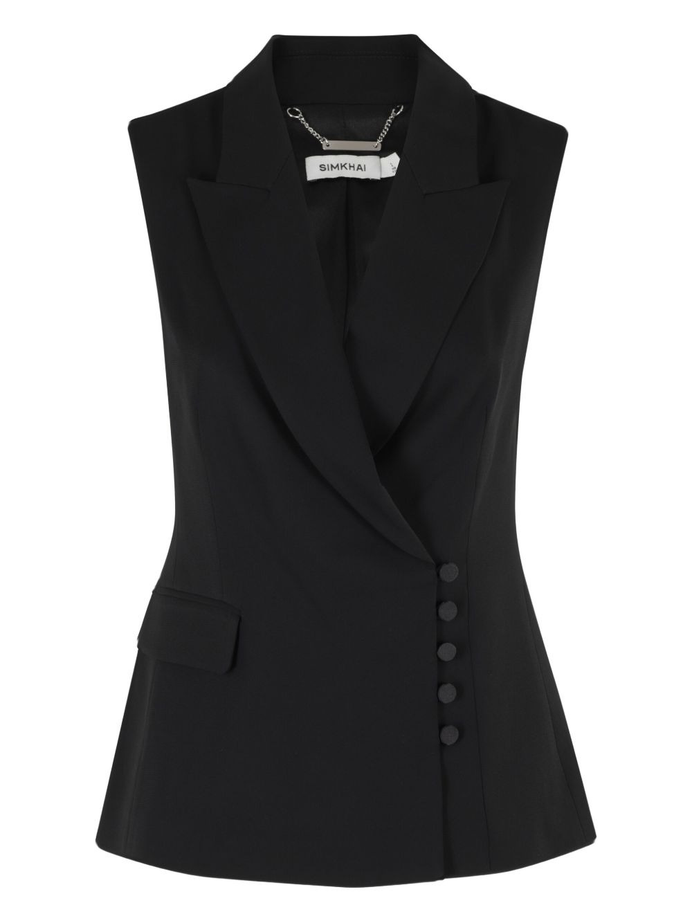 chain-trimmed button-fastening waistcoat Highlights - Black - Chain detail - Notched lapel - Asymmetrical fastening - Four buttons - Flared hem Imported Composition Acetate 71%, Polyester 29%
