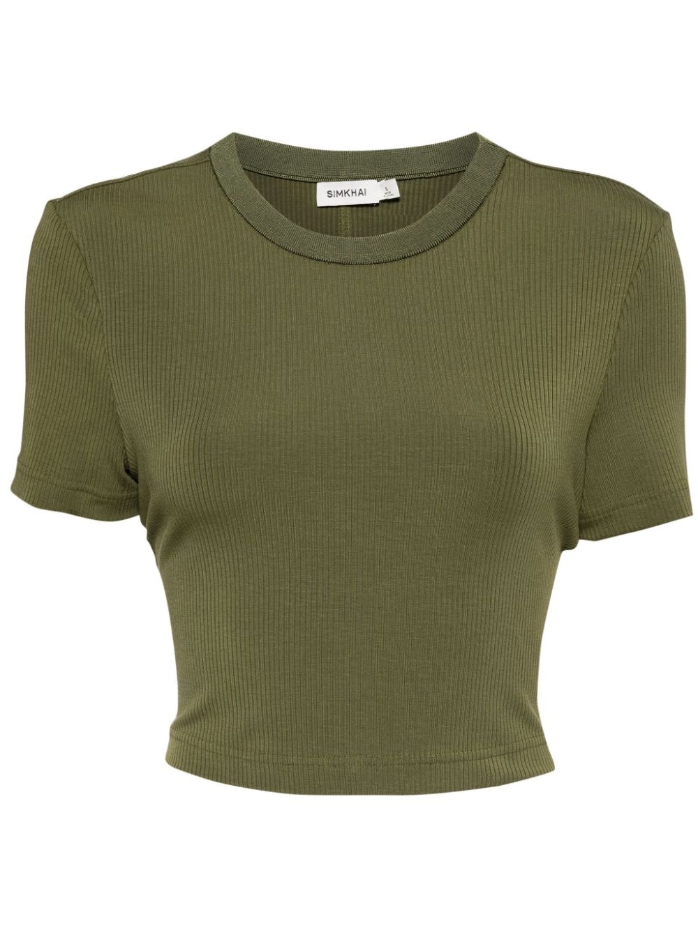 Cinta ribbed cropped top Highlights - Army green - Tencel™ blend - Fine ribbed - Crew neck - Cropped - Short sleeves - Straight hem Imported Composition TENCEL™ 92%, Spandex/Elastane 8% SIZE & FIT Model measurements Height 5 ft 10 in(1.77 m) Bust/Chest 31.49 in(80 cm) Hips 35.43 in(90 cm) Waist 25.19 in(64 cm) FittingInformation Designed for a slim fit that sits just away from the body offering a close yet comfortable fit Cropped in length Made from a midweight stretch fabric, this piece offers elasticity and flexibility when worn Washing instructions Hand Wash