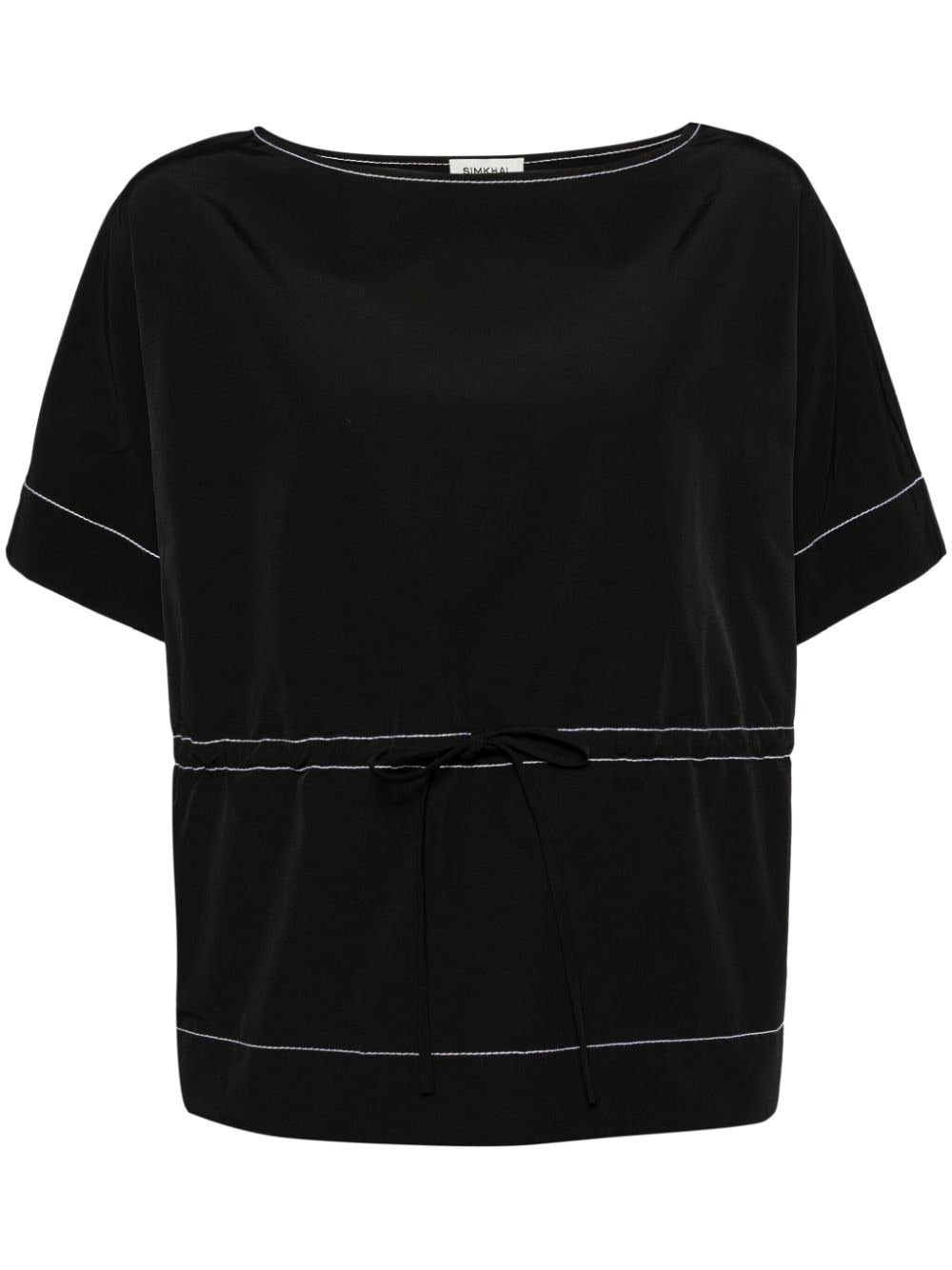 cotton blend top Highlights - Black - Cotton blend - Contrast stitching - Round neck - Short sleeves - Drawstring waist - Rear elasticated waistband - Rear curved hem Imported Composition Cotton 60%, Nylon 40% SIZE & FIT Model measurements Height 5 ft 10 in(1.77 m) Bust/Chest 31.49 in(80 cm) Hips 35.43 in(90 cm) Waist 25.19 in(64 cm) FittingInformation Designed for a close fit at the chest and waist with a loose fit at the hip Made from a midweight non-stretch fabric