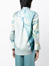 Elika marble-print shirt Highlights - Turquoise blue-green - Satin finish - Marbled pattern - Fabric-covered buttons - Spread collar - Concealed front button fastening - Long sleeves - Buttoned cuffs - Curved hem Imported Composition Polyester 97%, Spandex/Elastane 3% SIZE & FIT Model measurements Height 5 ft 10 in(1.77 m) Bust/Chest 31.49 in(80 cm) Hips 35.43 in(90 cm) Waist 25.19 in(64 cm) FittingInformation Designed to be unstructured, offering a loose fit throughout Made from a midweight non-stretch fabric This piece fits true to size – take your usual size Washing instructions Dry Clean Only