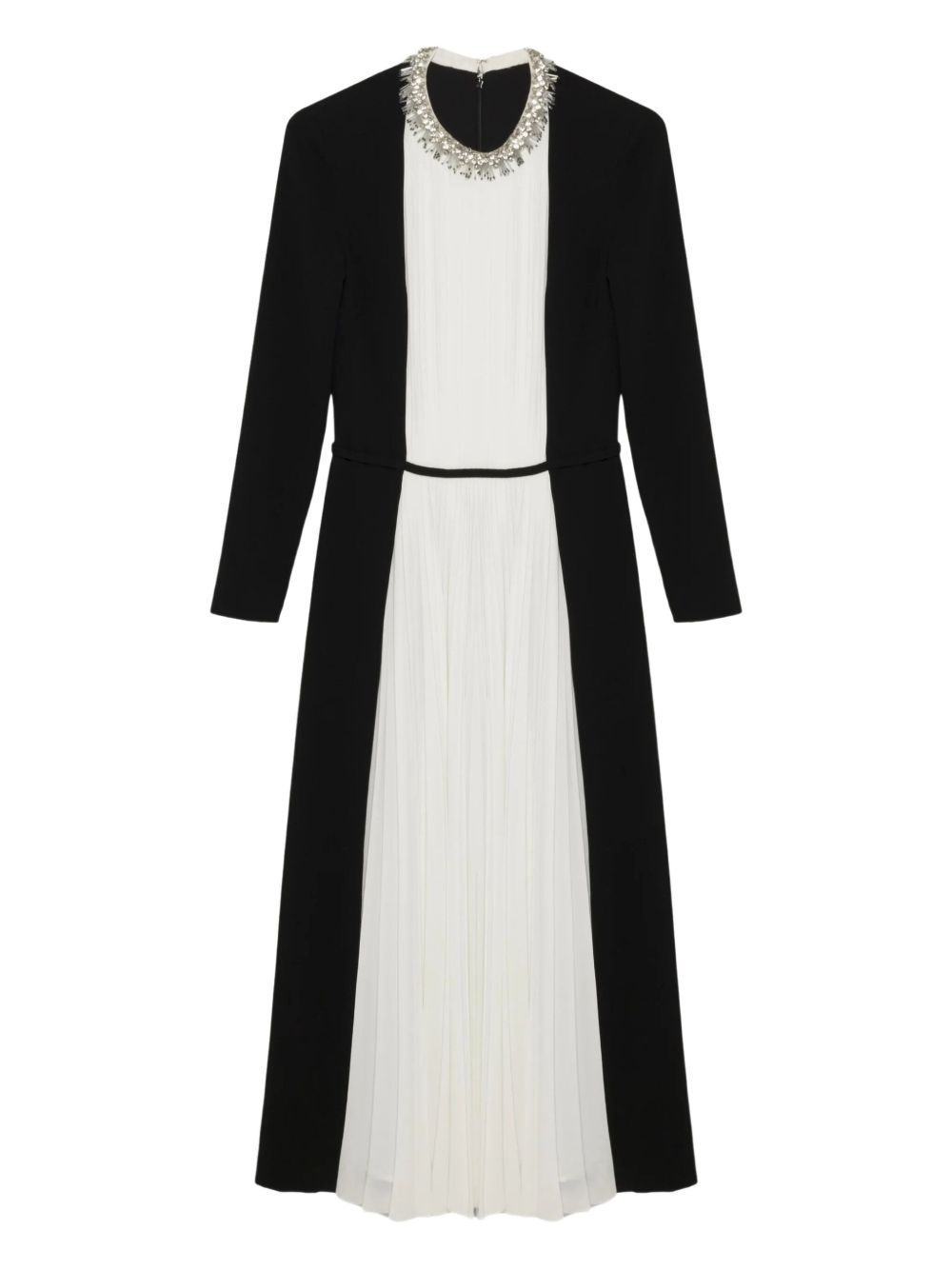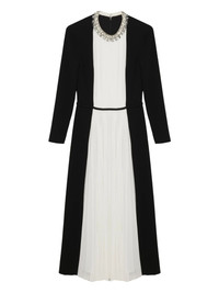 embellished pleated midi day dress Highlights - White - Pleated skirt - Long sleeves - Neck embellishments - A-line skirt Imported Composition Acetate 71%, Polyester 29% Washing instructions Read Manufacturer Guidelines