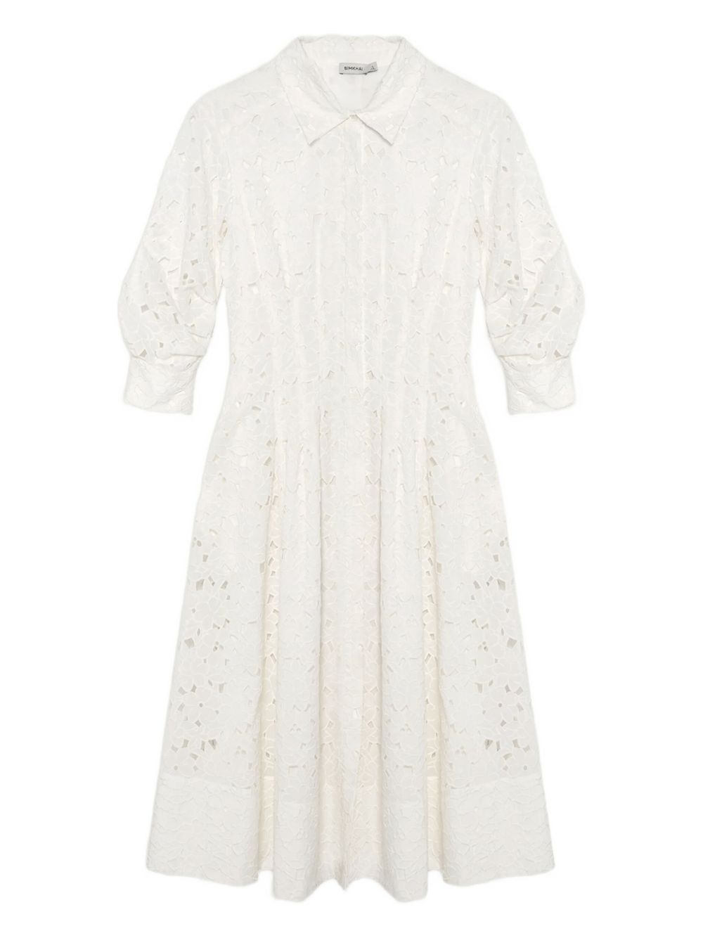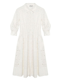 eyelet-embroidered shirt dress Highlights - White - Eyelet embroidery - Shirt collar - Three-quarter sleeves - Pleated skirt Imported Composition Lining: Cotton 100% Outer: Cotton 100% Washing instructions Read Manufacturer Guidelines