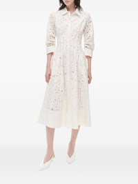 Jazz pleated broderie anglaise cotton midi shirt dress White