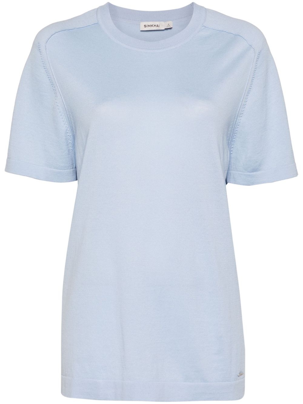 fine-knit top Highlights - Pastel blue - Cotton - Fine knit - Ribbed trim - Crew neck - Inside-out effect seams - Short raglan sleeves - Silver-tone logo plaque - Straight hem Imported Composition Cotton 100% SIZE & FIT Model measurements Height 5 ft 9 in(1.76 m) Bust/Chest 31.88 in(81 cm) Hips 35.43 in(90 cm) Waist 24.8 in(63 cm) FittingInformation Designed for a relaxed fit, this piece allows for comfort and movement when worn Made with a lightweight knit, this piece offers some stretch This piece fits true to size – take your usual size