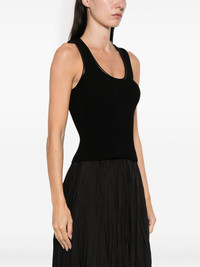 fine-ribbed tank top Highlights - Black - Ecovero™ blend - Ribbed knit - Piped-trim detailing - Scoop neck - Sleeveless - Raw-cut edge - Straight hem Imported Composition Ecovero 72%, Polyester 28% SIZE & FIT Model measurements Height 5 ft 10 in(1.78 m) Bust/Chest 33.46 in(85 cm) Hips 36.22 in(92 cm) Waist 23.22 in(59 cm) FittingInformation Designed for a close fit throughout Made with a midweight knit, this piece offers some stretch