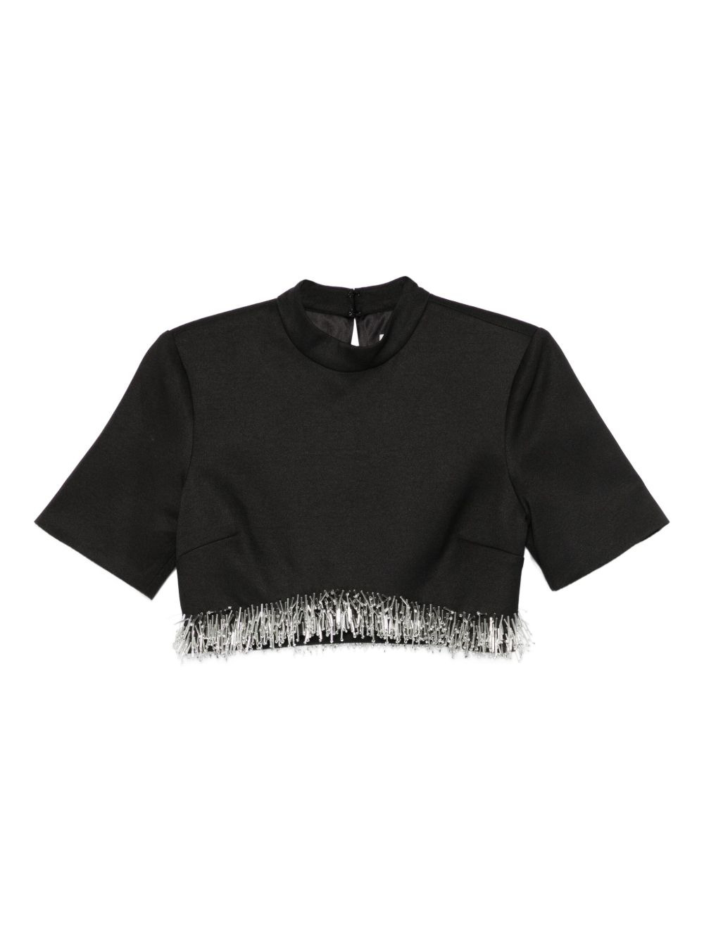 fringe-trimmed short-sleeve top Highlights Imported Composition Outer: Polyester 97%, Lycra 3% Lining: Polyester 100% SIZE & FIT Model measurements Height 5 ft 11 in(1.8 m) Bust/Chest 31.49 in(80 cm) Hips 36.61 in(93 cm) Waist 24.4 in(62 cm)