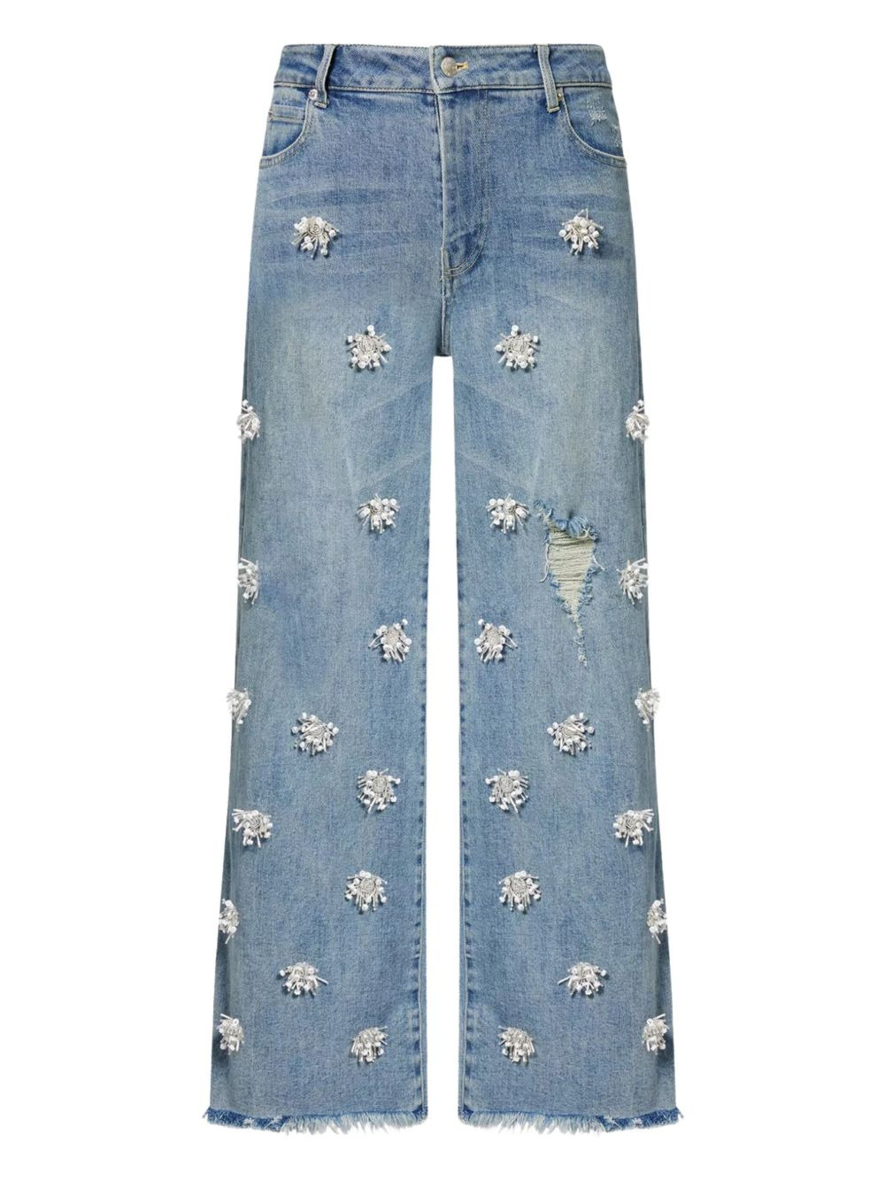 Jude embellished frayed jeans Highlights - Light blue - Distressed detail - Beaded embellishment - High rise - Wide leg - Frayed hem Imported Composition Cotton 99%, Elastane 1% Washing instructions Read Manufacturer Guidelines