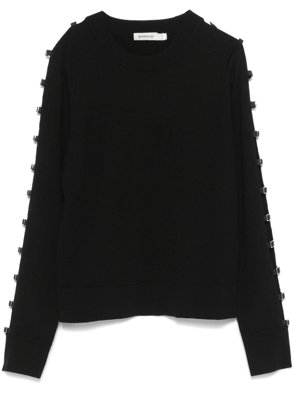Kaitlyn sweater Highlights - Black - Merino wool - Ribbed knit - Crew neck - Long sleeves - Cut-out detailing - Decorative buckle detailing - Straight hem Imported Composition Merino 100% SIZE & FIT Model measurements Height 5 ft 10 in(1.77 m) Bust/Chest 30.7 in(78 cm) Hips 35.03 in(89 cm) Waist 23.62 in(60 cm) FittingInformation Designed for a slim fit that sits just away from the body offering a close yet comfortable fit The ribbed hem offers a close, comfortable fit Made with a midweight knit, this piece offers some stretch