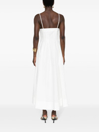 Kittiya cotton midi dress Highlights - White - Cotton blend - Poplin texture - Pleat detailing - Square neck - Adjustable spaghetti straps - Sleeveless - Two side inset pockets - Flared skirt - Full lining - Concealed side hook and zip fastening Imported Composition Lining: Rayon 82%, Nylon 18% Outer: Cotton 63%, Polyester 37% SIZE & FIT Model measurements Height 5 ft 10 in(1.77 m) Bust/Chest 32.28 in(82 cm) Hips 35.03 in(89 cm) Waist 25.19 in(64 cm) FittingInformation Designed for a close fit at the chest and waist with a loose fit at the hip The adjustable shoulder straps allow for a preferred fit when worn Made from a midweight non-stretch fabric This piece fits true to size – take your usual size Washing instructions Dry Clean Only