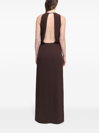 Kosme gown Highlights - Coffee brown - Stretch-design - Cowl neck - Concealed rear zip fastening - Sleeveless - Open back - Straight hem - Floor-length Made in United States Composition Lining: Rayon 94%, Spandex/Elastane 6% Outer: Rayon 96%, Elastane 4%