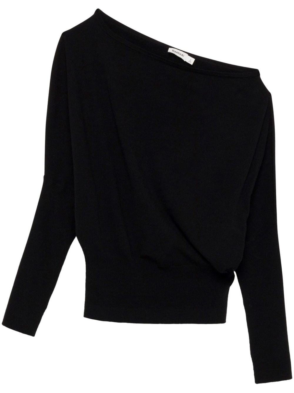 Lavina off-shoulder sweater Highlights - Black - Wool blend - Knitted construction - Off-shoulder - Draped design - Asymmetric neck - Long sleeves - Straight hem Imported Composition Wool 62%, TENCEL™ 20%, Polyester 18% SIZE & FIT FittingInformation Designed for a loose fit at the chest and waist with a close fit at the hips The ribbed hem offers a close, comfortable fit Made with a lightweight knit, this piece offers some stretch
