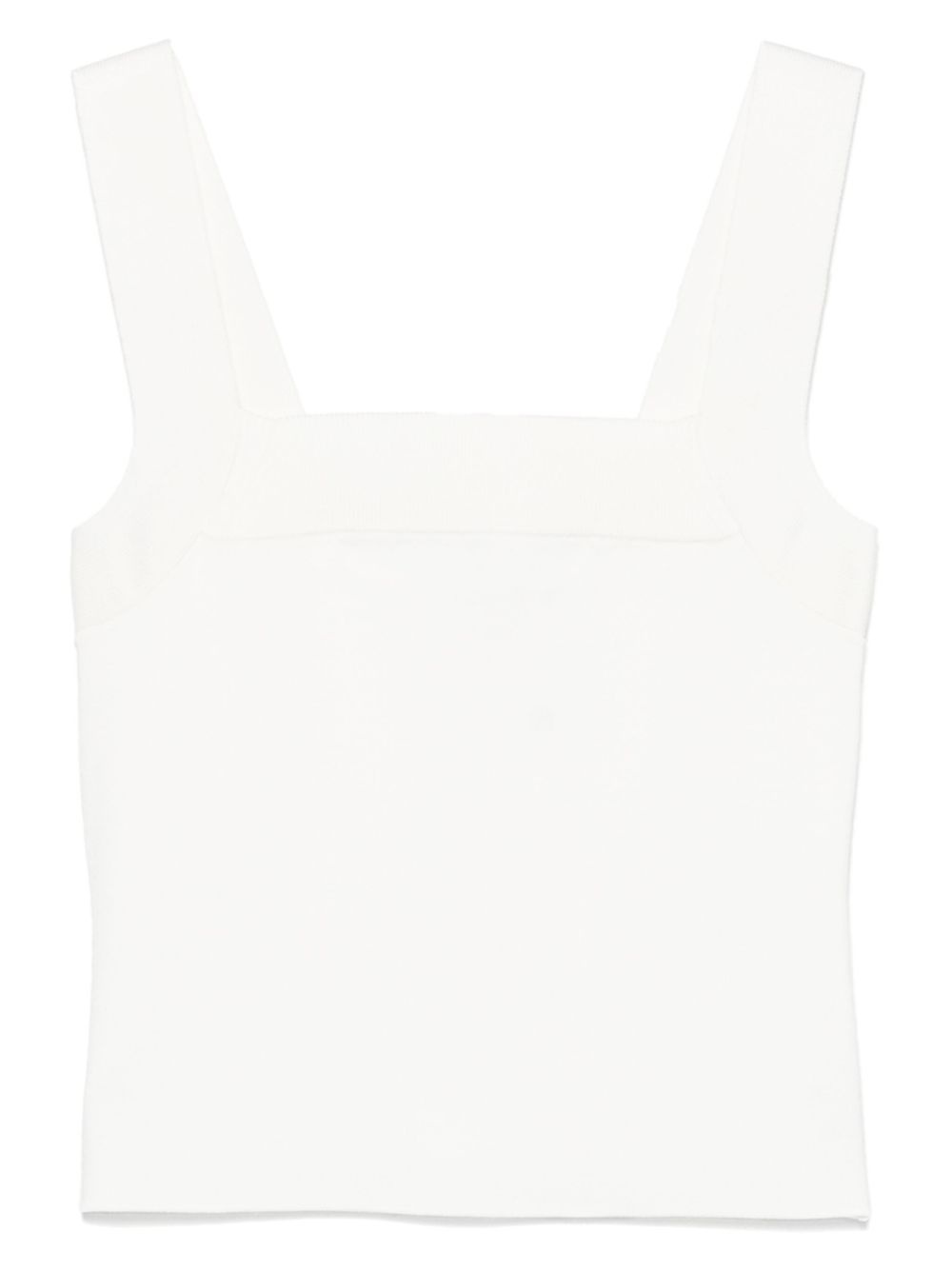 Madine tank top Highlights - White - Square neck - Sleeveless - Straight hem Imported Composition Rayon 80%, Nylon 18%, Spandex/Elastane 2% SIZE & FIT Model measurements Height 5 ft 11 in(1.8 m) Bust/Chest 31.49 in(80 cm) Hips 35.82 in(91 cm) Waist 24.8 in(63 cm) FittingInformation Designed for a close fit throughout Made from a lightweight non-stretch fabric Washing instructions Dry Clean Only