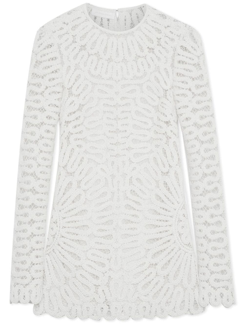 Mccall cage crochet mini dress white cotton cage crochet round neck concealed front zip fastening long sleeves above-knee length Made in United States Composition Cotton 100% SIZE & FIT Measurement SLEEVE LENGTH 25.51 in(64.8 cm) HIPS 30.98 in(78.7 cm) LENGTH 30.98 in(78.7 cm) WAIST 27.99 in(71.1 cm) BUST 30.98 in(78.7 cm)