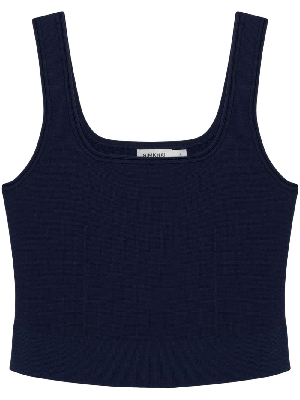 Ramaina tank top Highlights - Navy blue - Stretch-jersey - Square neck - Wide shoulder straps - Piped-trim detailing - Sleeveless - Straight hem - Piped-trim detailing Imported Composition Rayon 65%, Nylon 19%, Polyester 14%, Spandex/Elastane 2%