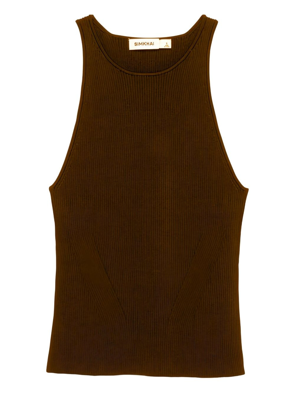 Reza ribbed racerback tank top Highlights - Brown - Ribbed texture - Racerback - Round neck Imported Composition Rayon 72%, Nylon 27%, Spandex/Elastane 1% Washing instructions Read Manufacturer Guidelines