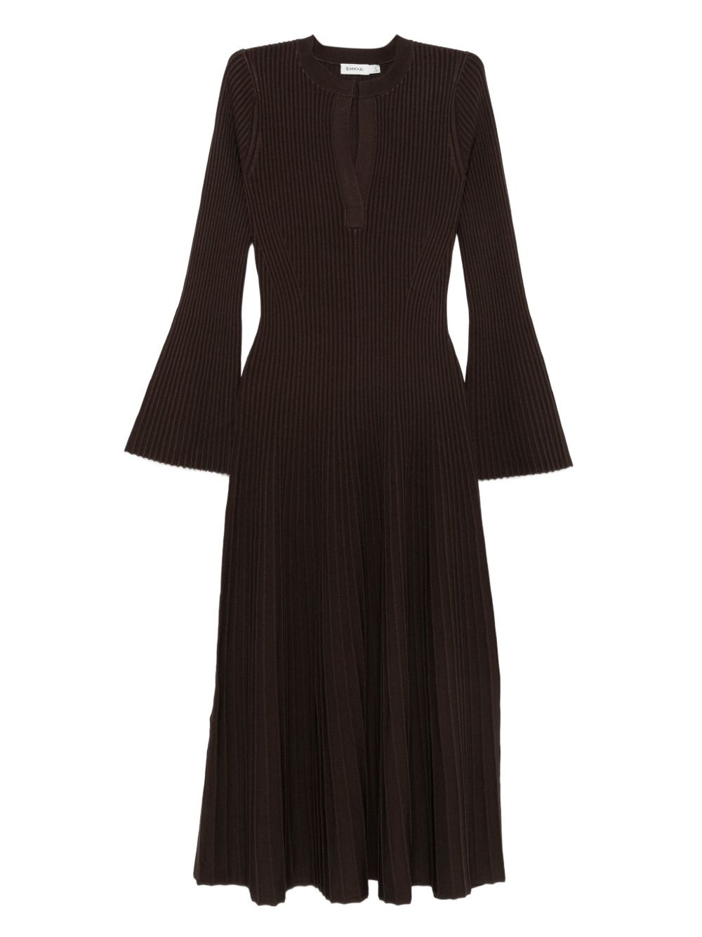 ribbed bell-sleeve dress Highlights - Brown - Ribbed knit - Bell sleeves - V-neckline - A-line skirt - Fitted bodice Imported Composition Rayon 83%, Polyester 17% SIZE & FIT Model measurements Height 5 ft 10 in(1.79 m) Bust/Chest 31.88 in(81 cm) Hips 35.43 in(90 cm) Waist 23.62 in(60 cm) Washing instructions Dry Clean Only