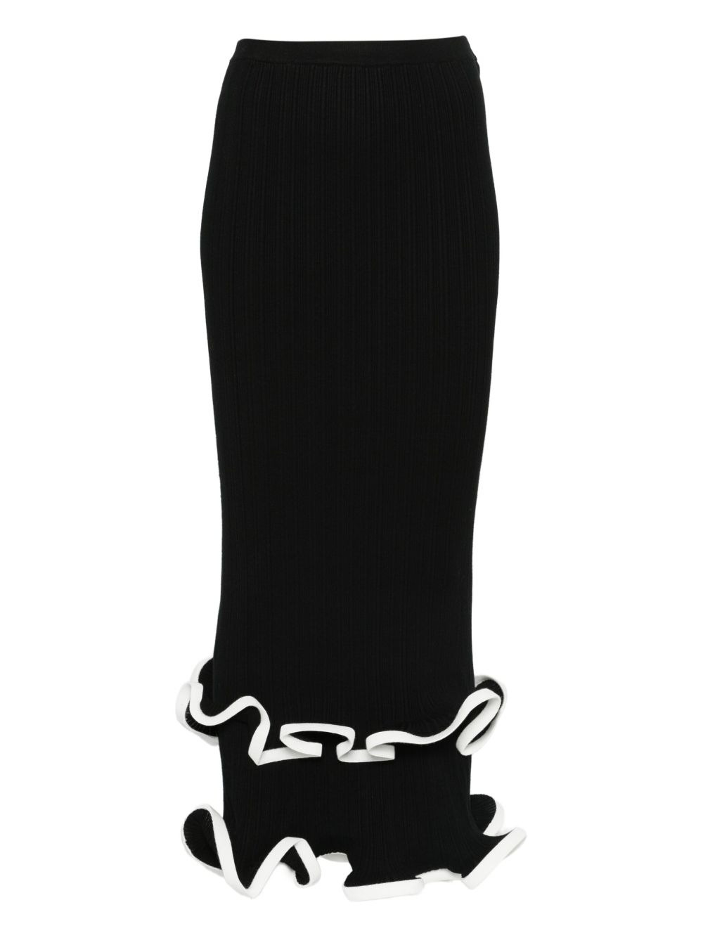 ruffled midi skirt Highlights - Black - Ribbed knit - Ruffled hem - Mid length - Contrasting trim Imported Composition Fabric 100% SIZE & FIT Model measurements Height 5 ft 8 in(1.73 m) Bust/Chest 29.92 in(76 cm) Hips 33.07 in(84 cm) Waist 23.22 in(59 cm) Washing instructions Read Manufacturer Guidelines