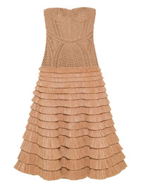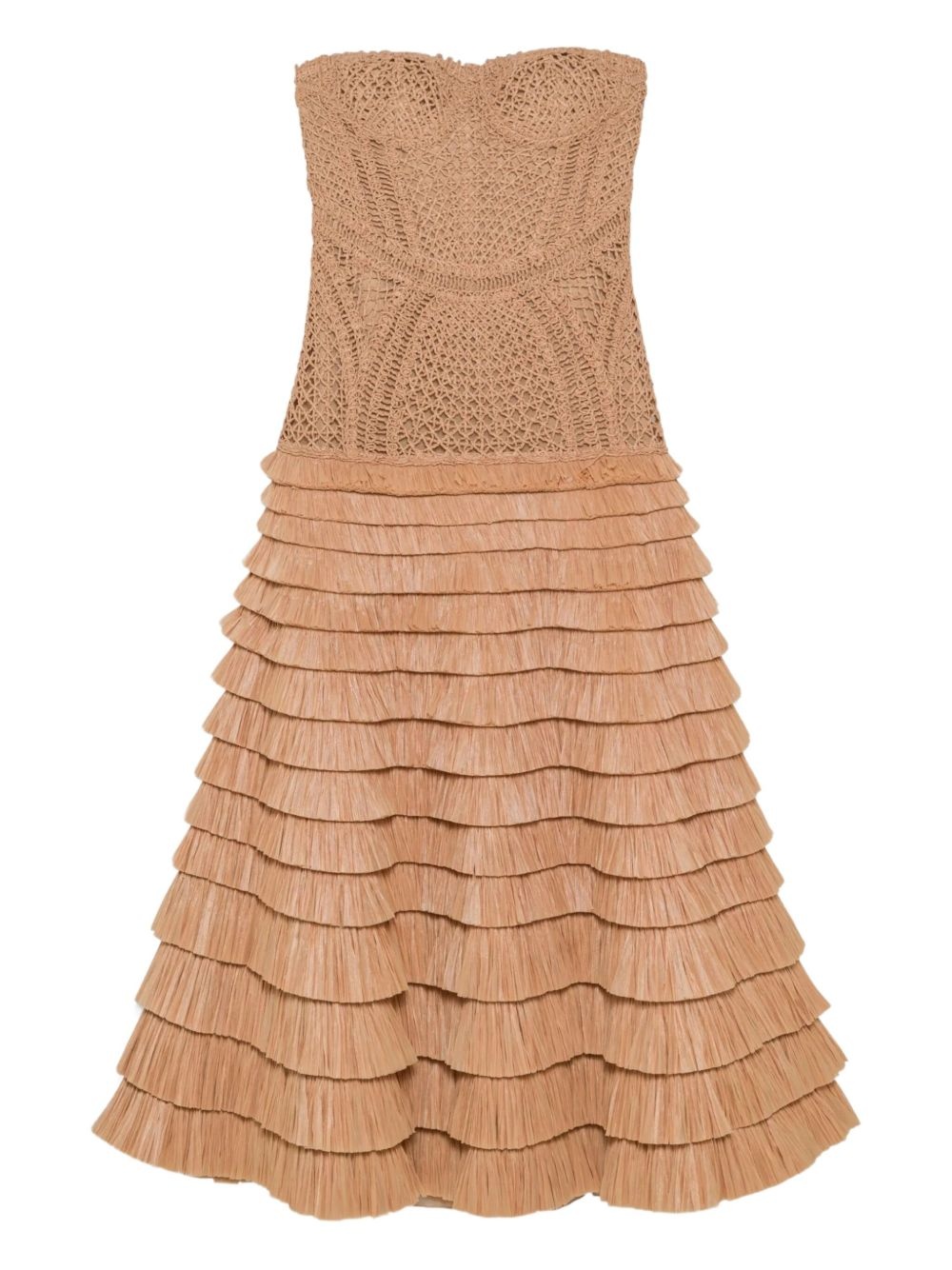 Santana midi dress Highlights - Beige - Multi-layered ruffle design - Fitted waist - Mid-length Imported Composition Raffia 95%, Polyester 4%, Fabric 1% Washing instructions Read Manufacturer Guidelines