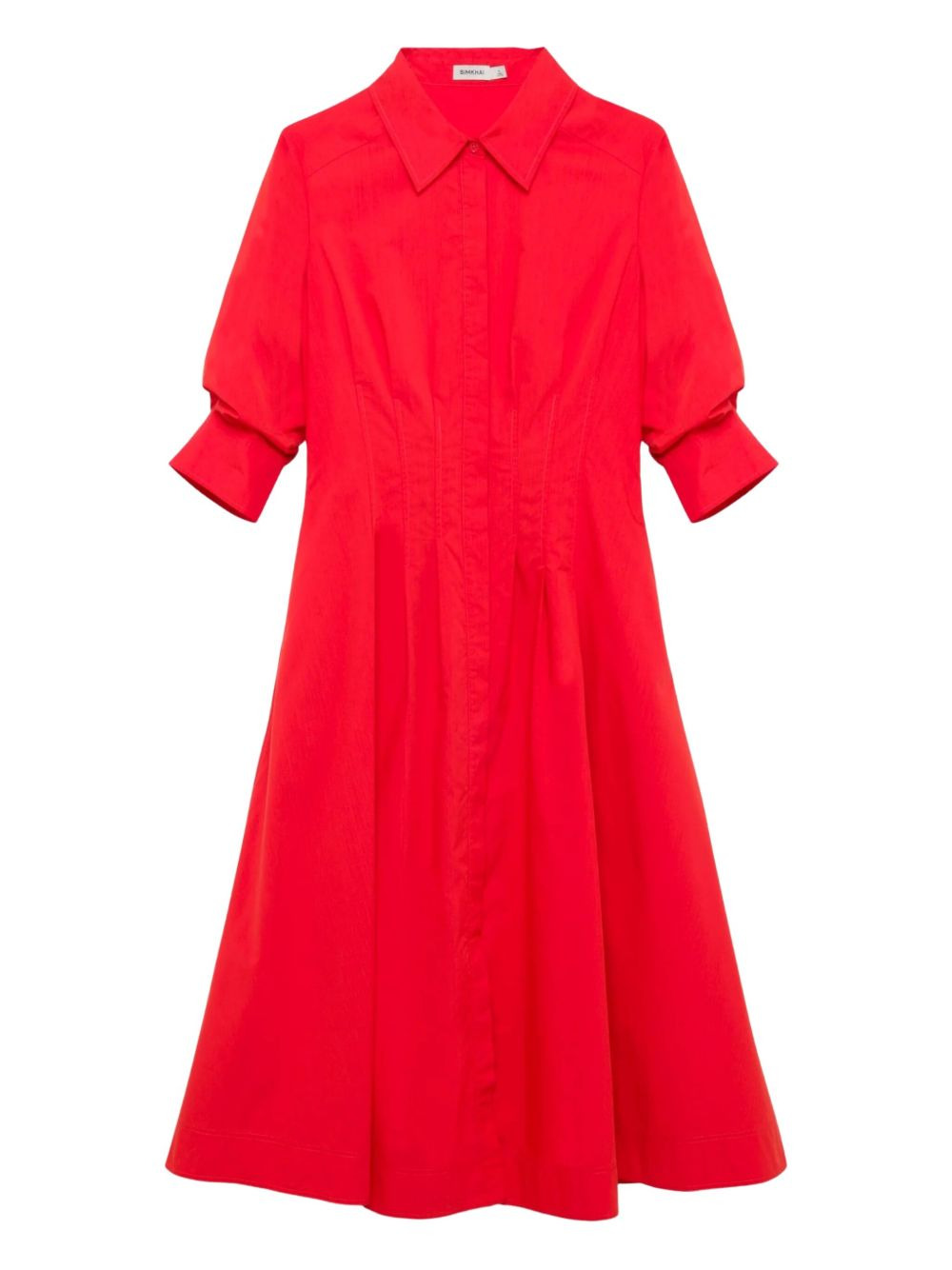 Jazz pleated cotton-blend poplin midi shirt dress Red