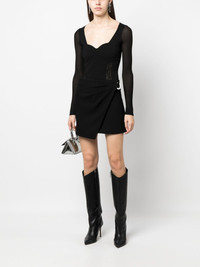sweetheart-neck fine-knit top Highlights - Jet black - Fine knit - Stretch-design - Layered design - Sweetheart neck - Underwire cup - Semi-sheer sleeves - Long sleeves - Straight hem Imported Composition Rayon 79%, Polyester 11%, Nylon 9%, Spandex/Elastane 1% SIZE & FIT Model measurements Height 5 ft 11 in(1.8 m) Bust/Chest 31.49 in(80 cm) Hips 36.22 in(92 cm) Waist 25.59 in(65 cm) Measurement SLEEVE LENGTH 20.07 in(51 cm) LENGTH 17.71 in(45 cm) WAIST 22.44 in(57 cm) BUST 26.37 in(67 cm) Shoulder Width 10.62 in(27 cm) FittingInformation Designed for a close fit throughout Made from a midweight non-stretch fabric This piece fits true to size – take your usual size Washing instructions Hand Wash