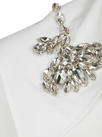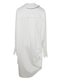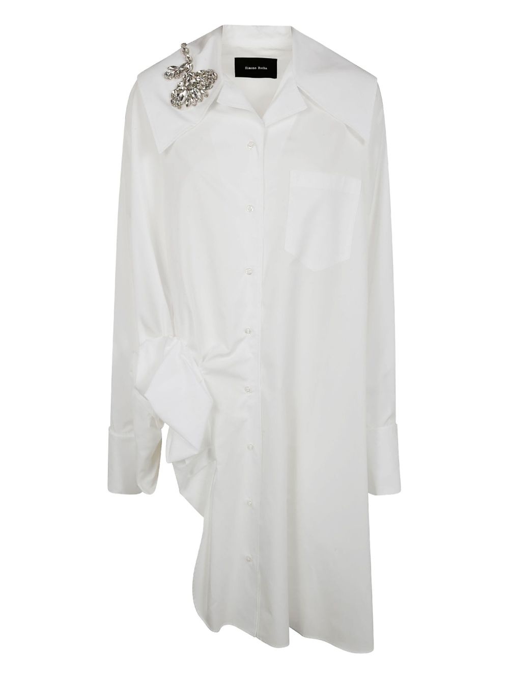 asymmetrical shirtdress Highlights - White - Oversized collar - Jeweled brooch detail - Front button fastening - Single chest pocket - Gathered side detail Imported Composition Cotton 100%