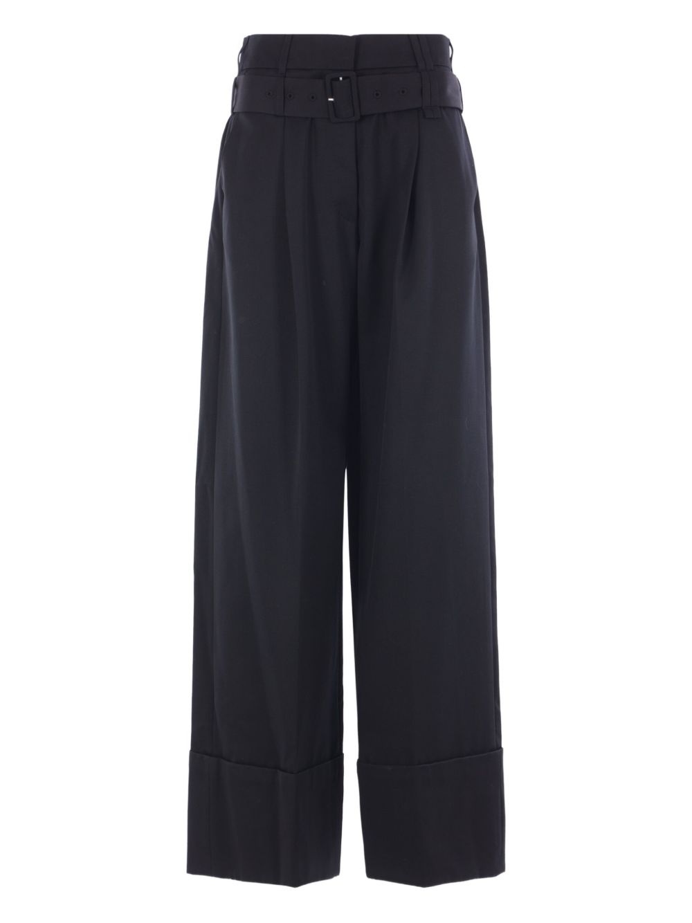 belted cuffed wide-leg trousers Highlights Imported Composition Outer: Polyester 55%, Virgin Wool 45% Lining: Acetate 60%, Cupro 40%