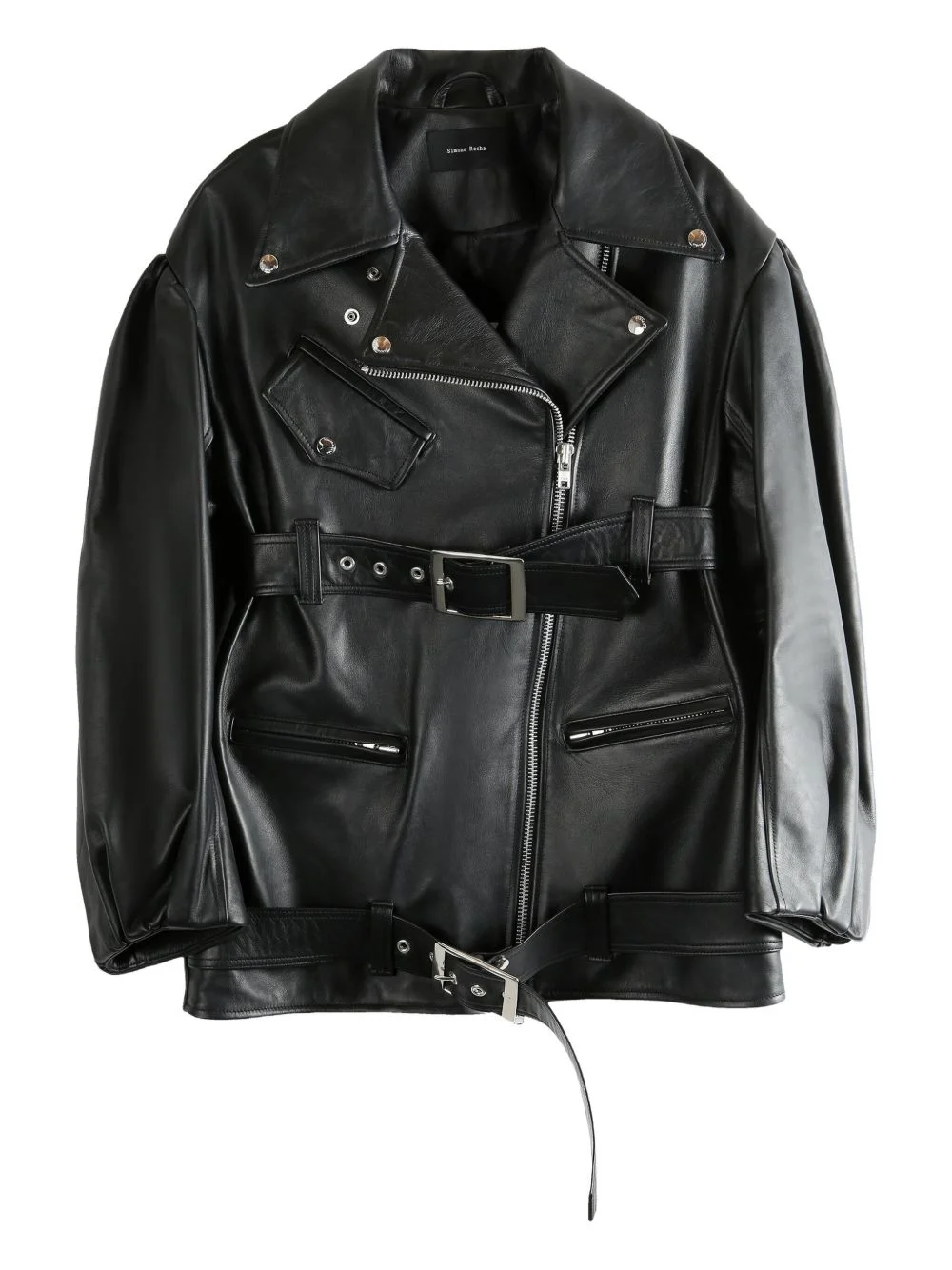 Puff Sleeve Multi Belt Biker Jacket
