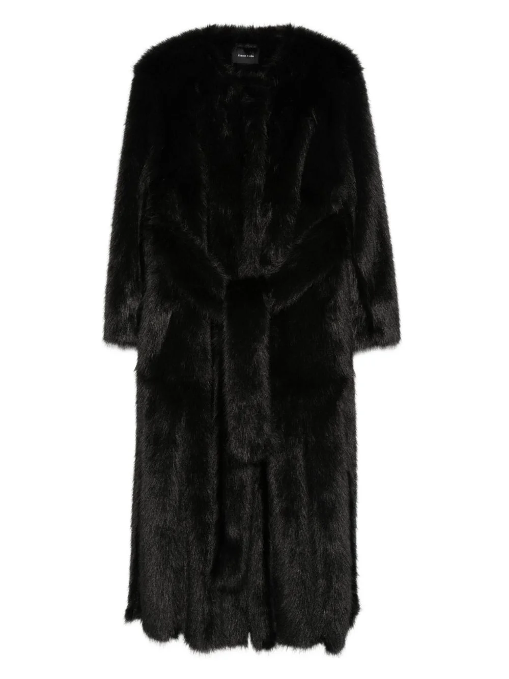 belted long coat Highlights - Black - Belt - Long sleeves - Front pockets Imported Composition Outer: Modacrylic 48%, Polycarbonite 39%, Polyester 13% Lining: Viscose 100%