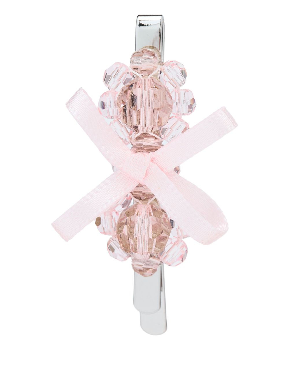 bow crystal flower hair clip Highlights - Pale pink - Bow detail - Crystal embellishment - Mini size - Flower detail - Silver-tone hardware Imported Composition Metal 100%, Plastic 100%, Fabric 100%