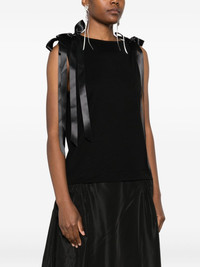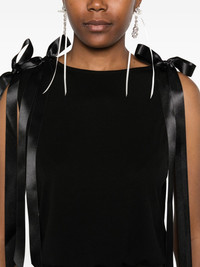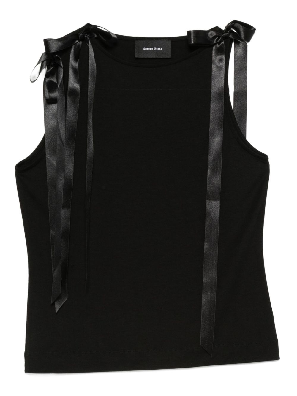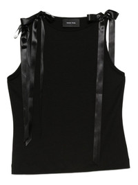 bow ribbon tank top Highlights - Black - Slash neck - Sleeveless Imported Composition Lyocell 100%, Polyester 100% SIZE & FIT Model measurements Height 5 ft 11 in(1.8 m) Bust/Chest 31.49 in(80 cm) Hips 36.61 in(93 cm) Waist 24.4 in(62 cm) Washing instructions Machine Wash