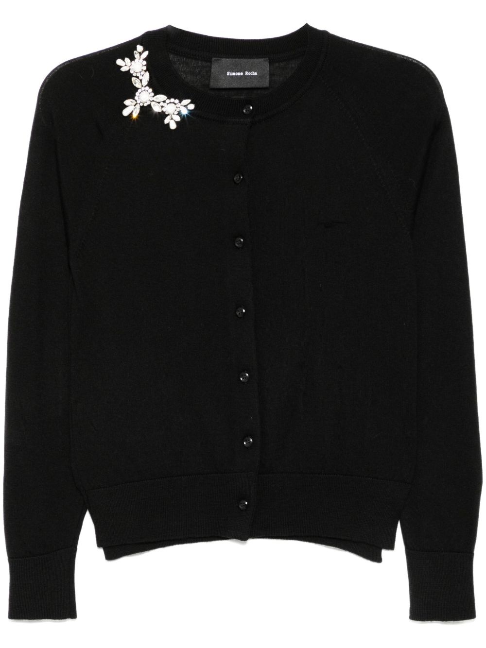 broken necklace cardigan Highlights - Black - Front button fastening - Long raglan sleeves - Ribbed cuffs and hem - Short side slits Imported Composition Silk 25% Outer: Merino 75% SIZE & FIT Model measurements Height 5 ft 10 in(1.77 m) Bust/Chest 31.49 in(80 cm) Hips 35.43 in(90 cm) Waist 25.19 in(64 cm) FittingInformation Designed for a slim fit that sits just away from the body offering a close yet comfortable fit Made from a midweight non-stretch fabric