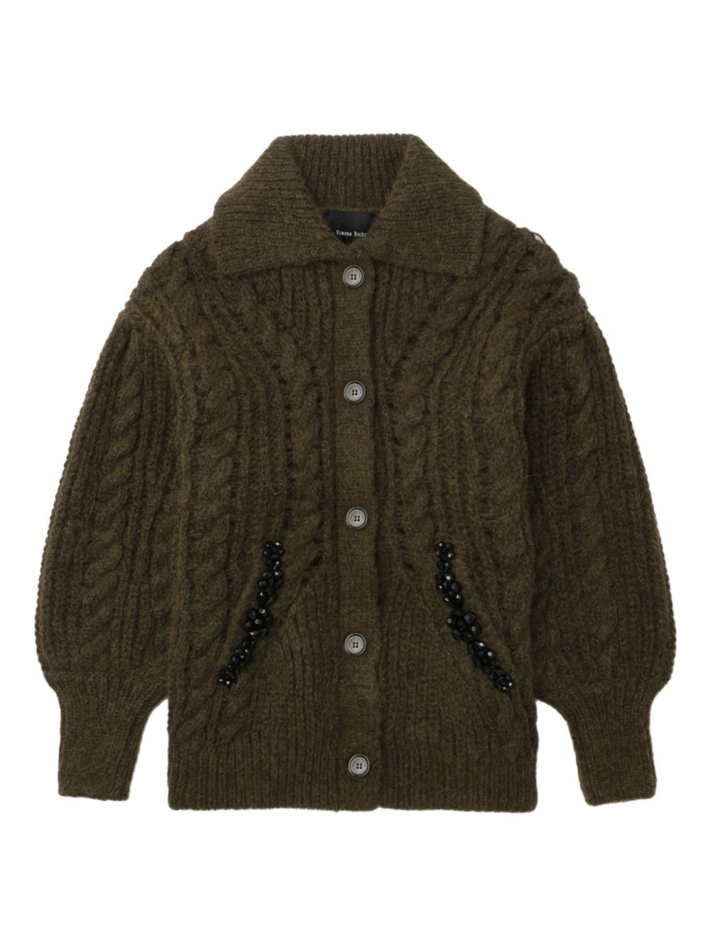 Embellished metallic cable-knit cardigan Army green