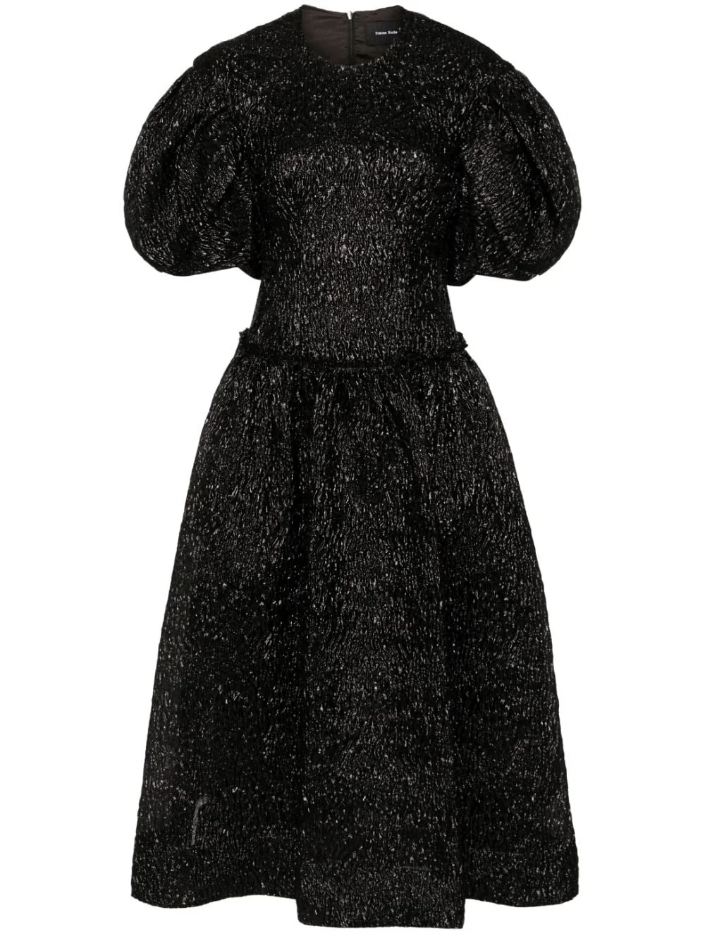crinkled midi dress Highlights - Black - Crinkled finish - High-shine detailing - Round neck - Short puff sleeves - Ruffled detailing - Gathered detailing - Two side inset pockets - Mid-length - Straight hem - Concealed rear zip fastening Imported Composition Outer: Polyester 39%, Metallized Polyester 37%, Polyamide 24% Lining: Acetate 60%, Viscose 40% SIZE & FIT Model measurements Height 5 ft 10 in(1.78 m) Bust/Chest 31.49 in(80 cm) Hips 37 in(94 cm) Waist 23.62 in(60 cm) FittingInformation Designed for a close fit at the chest and waist with a loose fit at the hip Made from a lightweight non-stretch fabric This piece fits true to size – take your usual size