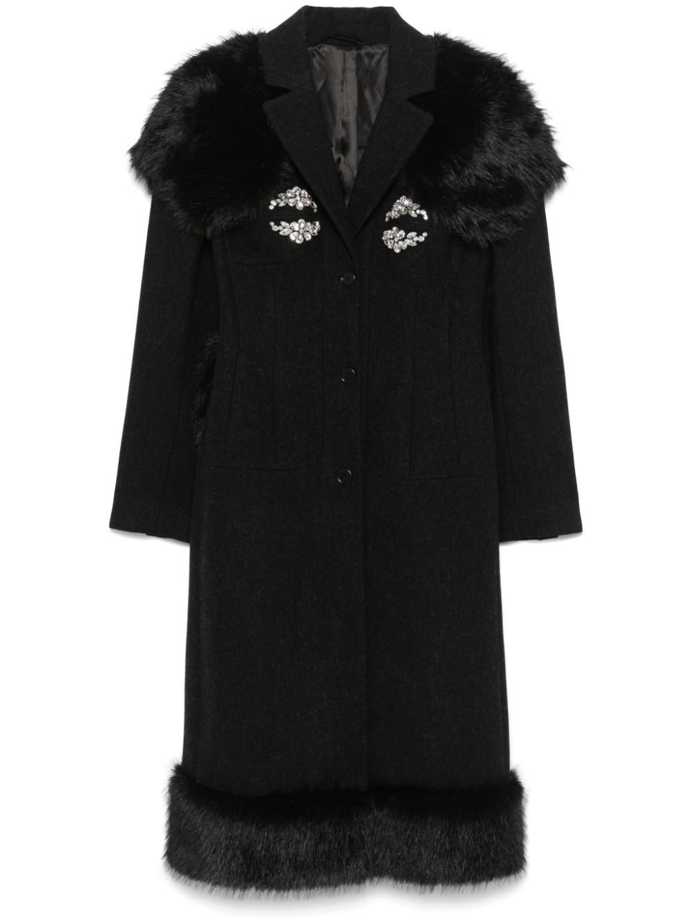 crystal-embellished coat Highlights - Black - Virgin wool blend - Crystal embellishment to the chest - Front button fastening - Notched lapels - Faux-fur details - Long sleeves - Buttoned cuffs - Moulded cup - Two side inset pockets - Central rear vent - Full lining - Straight hem - Mid-calf length Imported Composition Outer: Polyester 100%, Virgin Wool 80%, Polyamide 20% Lining: Viscose 100% Washing instructions Dry Clean Only