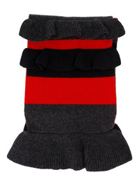 Daisy ruffled striped scarf Highlights - Grey - Red stripes - Ribbed texture - Horizontal stripes Imported Composition Merino 90%, Cashmere 10%