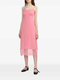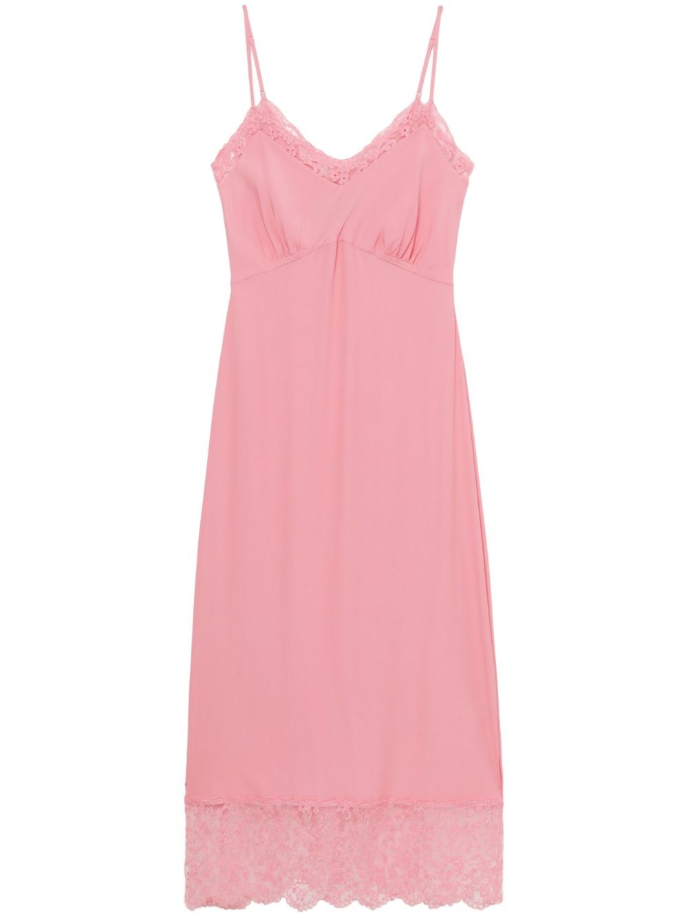 Deep midi dress Highlights - Flamingo pink - Adjustable spaghetti straps - Gathered detailing - Lace trim Imported Composition Acetate 73%, Silk 27%