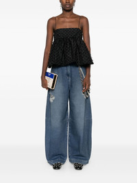 distressed frayed jeans Highlights - Blue - Distressed detailing - Frayed hem - Five pockets Imported Composition Cotton 100% SIZE & FIT Model measurements Height 5 ft 10 in(1.78 m) Bust/Chest 31.49 in(80 cm) Hips 37 in(94 cm) Waist 23.62 in(60 cm) Washing instructions Machine Wash