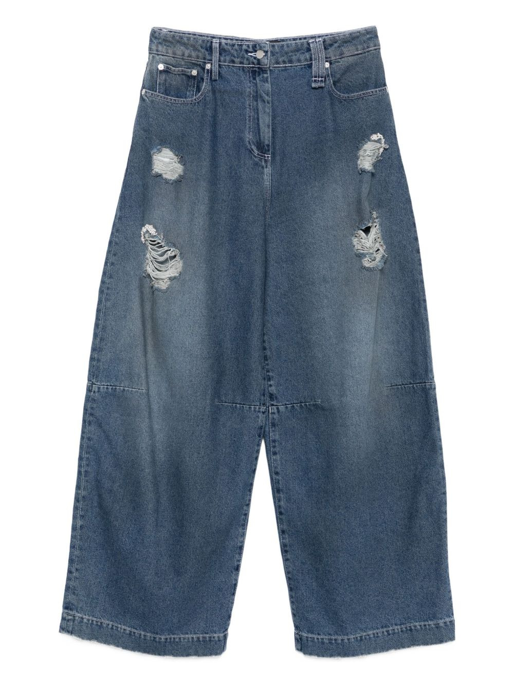 distressed puddle jeans Highlights - Blue - Distressed detailing - Frayed hems - Five pockets Imported Composition Cotton 100% Washing instructions Hand Wash