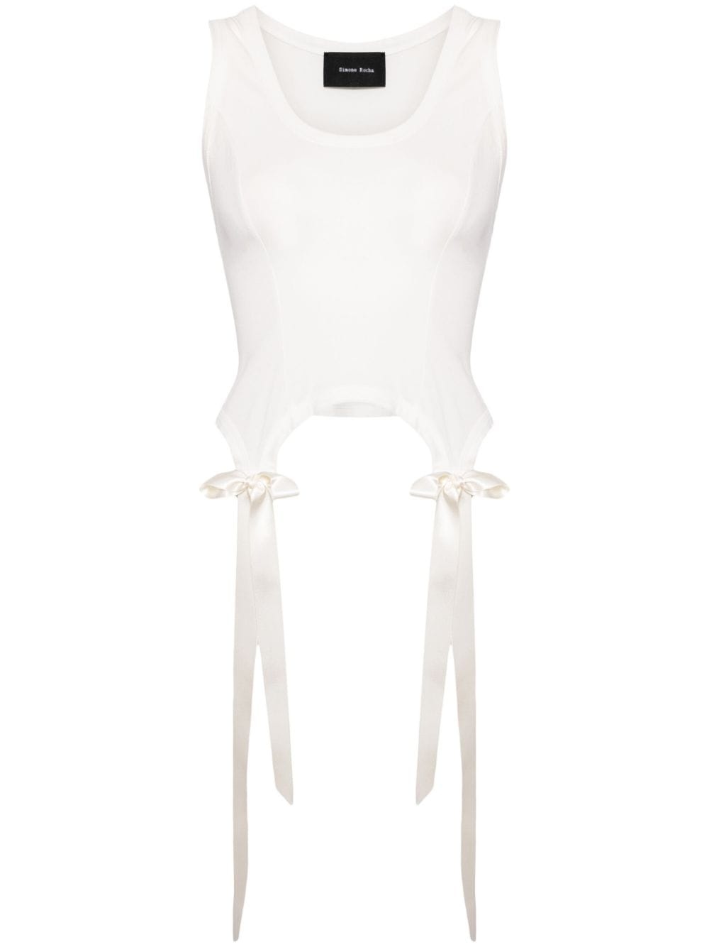 Easy Bow Tails cotton tank top Highlights - White - Cotton - Scoop neck - Sleeveless - Bow detailing - Tail details Imported Composition Cotton 100% SIZE & FIT Model measurements Height 5 ft 9 in(1.75 m) Bust/Chest 31.88 in(81 cm) Hips 35.03 in(89 cm) Waist 23.22 in(59 cm) Measurement LENGTH 14.96 in(38 cm) BUST 33.85 in(86 cm) FittingInformation Designed for a slim fit that sits just away from the body offering a close yet comfortable fit Made from a lightweight non-stretch fabric, this piece offers minimal elasticity when worn This piece fits true to size – take your usual size